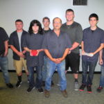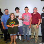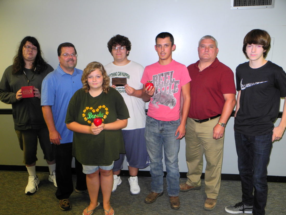 - GRANT RECIPIENTS — The Brooke County Board of Education recognized Brooke High School career technical instructors and students who secured nearly $60,000 in grants from the West Virginia Department of Education for new equipment. Among them were, front, broadcast technology student Sierra Fieldman; and back, from left, student Kinden Brown, instructor Kevin Elias and instructor Aaron Adams, all of the broadcast technology program; and student Corey Kins, instructor Jack Minger and student Brandon Myers of the carpentry program. — Warren Scott