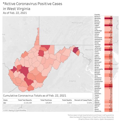According to data from the Department of Health and Human Resources, the number of positive cases between Feb. 8 and ...