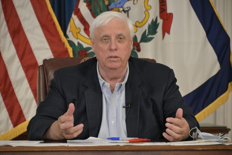 Gov. Jim Justice and Scott Adkins, acting director of WorkForce West Virginia, ...