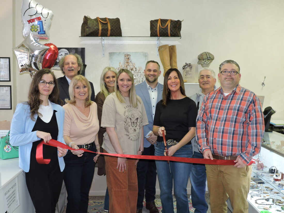 Members of the Weirton Area Chamber of Commerce joined Kelly Jeffers and her staff on March 15 to celebrate the recent re-opening of the Fashion Exchange at its new location, 412 Penco Road, Weirton. The thrift and consignment store offers a variety of gently used designer young ladies’ and women’s fashions, jewelry, purses and more. The business is open from 9 a.m. to 5 p.m., Tuesday through Saturday. (Photo by Craig Howell)
