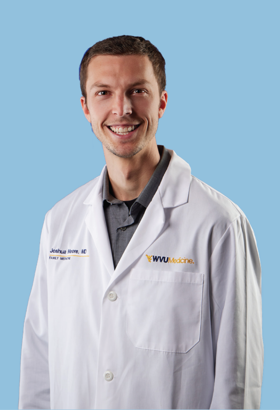 Moore attended West Virginia University, where he completed his bachelor’s degree in exercise physiology. After earning his medical degree, he completed his family medicine residency at the WVU School of Medicine. Moore says he loves family medicine because of the ability to establish relationships and build trust with his patients.