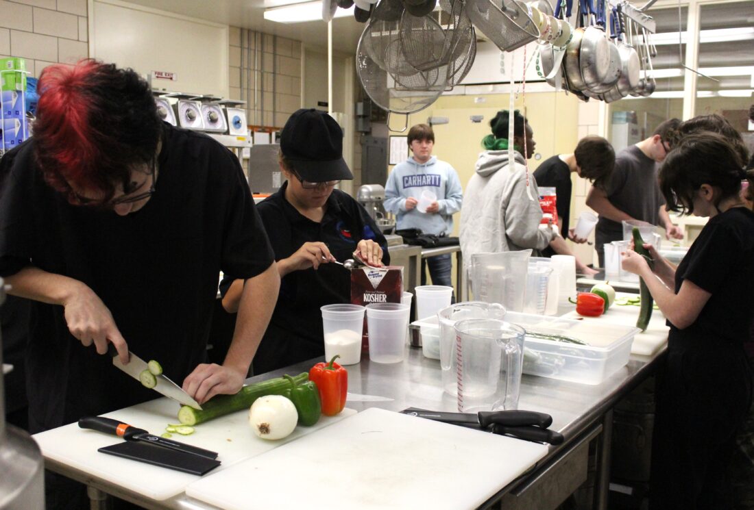 Contributed PREPARATION — Culinary arts students prepare homemade pickles as they get ready for the re-opening of the CrestView Inn restaurant at the Jefferson County Joint Vocational School.