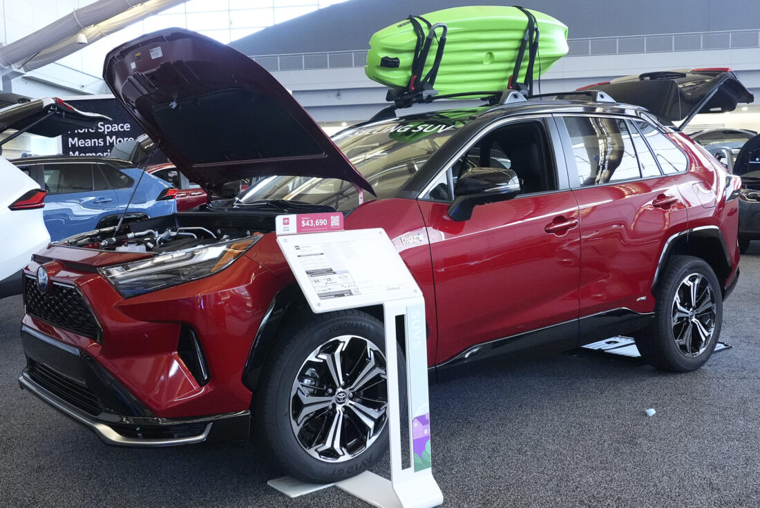 FILE - A Toyota RAV4 Prime is displayed at the Pittsburgh International Auto Show in Pittsburgh, Feb. 15, 2024. (AP Photo/Gene J. Puskar, File)