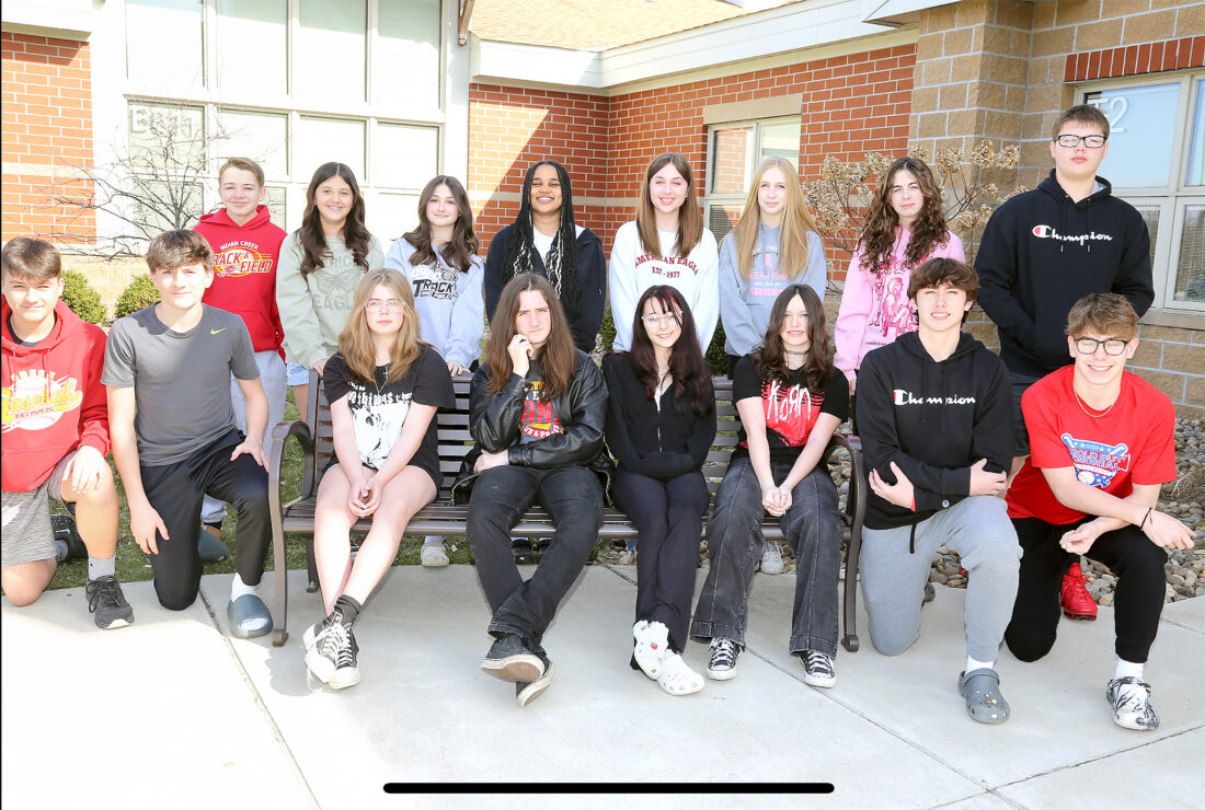 The GFWC Jefferson County Woman’s Club invited the Indian Creek Middle School Junior National Honor Society to join them in a “Socks for Seniors” project. More than 180 pairs of new socks were collected by the school and members of the club. St. Patrick’s Day card messages were attached to the socks and distributed to residents at the Laurels of Steubenville and the Capital Health and the Meadows in Cadiz. Students in Adviser Cathy DiBenedetto’s class and those joining in the cause included, from left, front, Dylan Komanych, Kyler Snyder, Keeley Johnson, Alec Stevens, Kacey Walenciej, Gianna Peivich, Quinn Ujich and Sawyer Pietro; and back, David Pawelczyk, Yarentzi Hernandez, Mia Andreozzi, Kyla Chamberline, Sofia Randazzo, Ashlynn Nezum, Cali Heck and Layton Evans. Those in the woman’s club thanked Principal Holly Minch-Hick. Officers of the GFWC Jefferson County Women’s Club include President Mary Lou Jones; Gina Judy, vice president; Lori Kinney, Cathy Lipinski and Anna Ault.