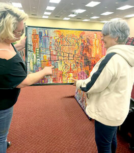 - Steubenville Art Association President Judy Schmidt, left, and Vice President Alysia Basluke viewed a painting submission for the show. — Contributed