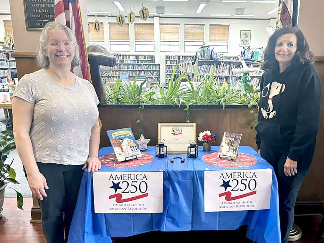 - DAR MEMBERS CELEBRATE ANNIVERSARY — At left, Roberta Fedoush, left, and Francine Hauldren, commemorated the 250th anniversary of Paul Revere’s ride with a display set up at the Mary H. Weir Public Library. The women are America 250 committee members with the Fort Steuben Chapter of the NSDAR. — Contributed
