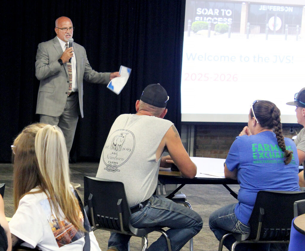 JVS WELCOMES NEW YEAR — The Jefferson County Vocational School held its student orientation Aug. 19 for incoming juniors, returning seniors and their families. Superintendent Ted Gorman addressed the hundreds in attendance during a brief assembly, followed by a tour of the building and the opportunity to meet teachers. Classes began Aug. 20 and Aug. 21. -- Contributed