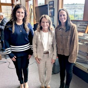 HONORING GUESTS — Steubenville City Schools officials were among those discussing business matters during the October meeting of the National Society Daughters of the American Revolution. Addressing those in attendance were, from left, Natalie Campana, SHS CTE department head; Melinda Young, SCS superintendent and chapter member; and Shana Wydra, STEM director and chapter member. -- Contributed