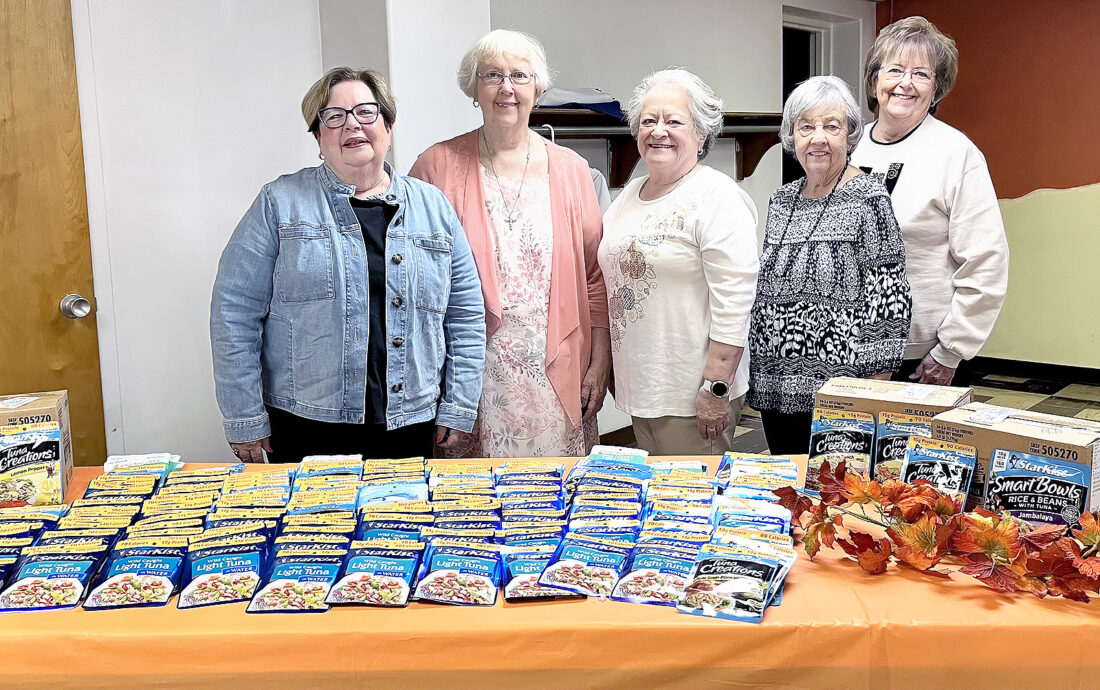 “Blessings Fall from Heaven” was the theme of Oct. 16 meeting of the Disciples Women. Members met in the Fellowship Hall of Weirton’s First Christian Church where President Janet Rymer welcomed members. Secretary Karen Blanc gave a blessing before the meal, Roberta Fedoush led in the singing of “Count your Blessings,” and Vice President Susan Brown discussed the topic “Ice Breakers on Prayers.” A devotion was given by Treasurer Connie Norwood and Blanc provided details about the women’s retreat at North Bend. Fedoush sang “In This Very Room.” Guest speaker Patricia D’Aurora, secretary of the Cancer Dietary Institute, spoke about the CDI, which provides meals to more than 70 cancer patients every month. First Christian Church donated more than 300 pouches of tuna andf gave a monetary donation to the cause. A unison prayer closed the meeting. Following the meeting, the group’s officers thanked D’Aurora for speaking about the program. The women included, from left, D’Aurora, Rymer, Brown, Norwood and Blanc.