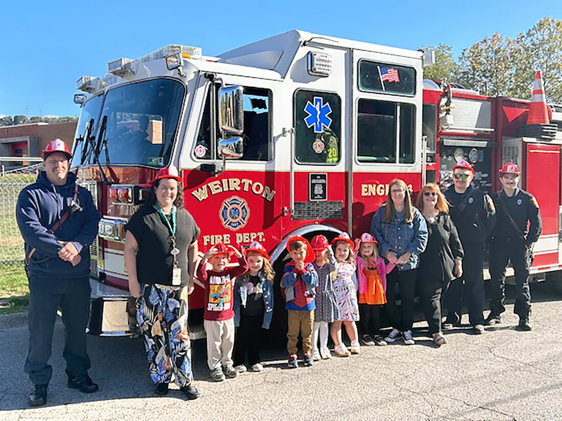 Marilyn Charnie of Charnie Insurance, located on West Street in Weirton, donated fire hats from the Hartford Insurance Company to the children who attend St. Paul’s School in Weirton. Joining Charnie in the presentation to the 3-year-old preschoolers and their teachers were members of the Weirton Fire Department.