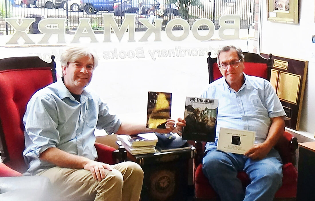 NEW BOOK FOR BABY BOOMERS — John Kuhner, left, owner of BookMarx Bookstore, is helping to promote the new book written by Steubenville resident and author Barry Bardone, entitled, “291 12th Avenue: You’re a Thousand Memories Away, or Are You?” Bardone’s first book “No Choice: Andrew Kimball in the Revolutionary War,” is available at the bookstore, as well. Those who purchase either book at BookMarx, located at 181 N. Fourth St., will receive a free, signed copy of Bardone’s 2003 book about being a substitute teacher, called “Always Put Your Name on the Board.” His newest book is also available on Amazon. -- Contributed