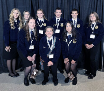 A SPECIAL TOUR — FFA members at Edison High School traveled to Indianapolis on Oct. 28-31 to take part in the 98th-annual National FFA Convention and Expo. Students attended workshop sessions and heard from keynote speakers. Attendees viewed the expo’s hundreds of exhibits and toured local sites. FFA members taking part included, from left, front, Adrienne Granatir, Bella Evans and Chloe Cornish; and back, Lena Wagner, Sydney Newburn, Maddie Granatir, Jon Whitlatch, Noah Lucas and Kloe Riley. -- Contributed