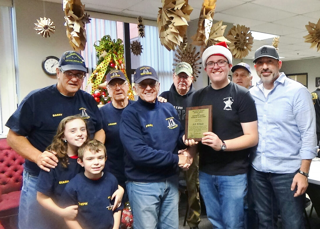 Jefferson County Sheriff Fred Abdalla Jr. hosted his annual Christmas luncheon for area veterans on Friday. Members from the Jefferson County Veterans Association and the Vietnam Veterans Support Group’s Steubenville chapter were in attendance, along with several other former members of the armed forces. This month’s luncheon included baked ham and turkey, wings, ribs, meatballs, sausage, mashed potatoes, greens, cornbread, potato casserole and other trimmings. At least a dozen treats were offered at the dessert table. Prior to the meal, Abdalla and Santa Claus presented a plaque to junior deputy J.B. Wilson, who was recognized for his devotion and continuous service to the sheriff’s office, as well as his appreciation for county veterans. Those in attendance included, from left, front, JCVA supporters Giada and Joseph Maccariella, JCVA Cmdr. Frank Santa, Wilson and Abdalla; and back, JCVA Adjutant Barry Bardone, JCVA members Frank Popp and David Rhodes and JCVA finance officer Tony Phillippi.