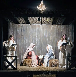 Angels played by Amelia Ault, Lydia Battistel, Lucy Collaros and Mayelee Rawson, along with shepherds George Huber and Bob Musgrave, as well as live animals, will be at the manger scene.
