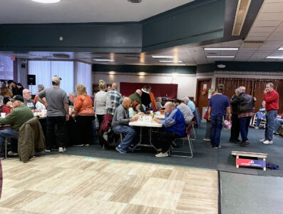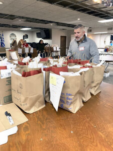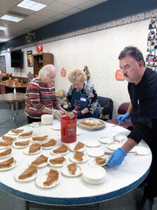 Free Thanksgiving turkey dinners were served at the Greater Weirton Senior Center on Thanksgiving Day. All of the meals were prepared by those at All Saints Church, who have been performing this free service for the last 19 years. At left, there were 290 deliveries prepared at the church, while 175 sit-down meals were served at the senior center between 11 a.m. and 2 p.m. The holiday meal included turkey, ham, sweet potatoes, green beans, bread stuffing, mashed potatoes and gravy, rolls and pumpkin pie. Several volunteers spent the holiday working to serve the meals, including members of the senior center, the church and high school and college students.