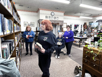 - SERVICE PROJECT — Members of Alpha Tau assisted staff at the Swaney Memorial Library following the group’s January meeting. Those assisting included, Michelle Lewis, left, and Ginger Greene. — Contributed