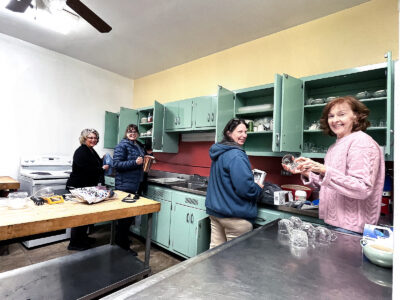 - KITCHEN HELP — Alpha Tau members who assisted the staff of Swaney Memorial Library in the kitchen area included, from left, Michelle McHaffie, Michelle Bernardi, Kim Swords and Rita Schmitt. — Contributed