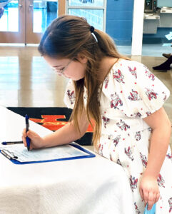 INDUCTION — Approximately 30 fourth-graders at Cross Creek Elementary School were inducted into the National Elementary Honor Society on Jan. 23, pledging to follow the four pillars of the organization, including scholarship, responsibility, service and leadership. Among those signing as one of the newest members was Aria June. -- Contributed