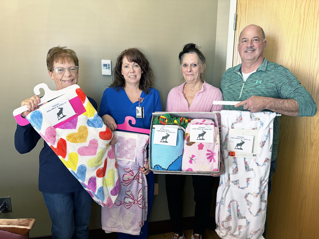 Members of Weirton Moose Lodge 688 crafted chemotherapy blankets for cancer patients receiving treatment at the WVU Medicine Weirton Medical Center. A group of lodge members volunteered to deliver the blankets on Tuesday afternoon, with additional blankets to be delivered at a later date. Those on hand to gift the blankets to the hospital were, from left, Dawn Ohalek, Moose Lodge 688 board member and chaplain; Billie Roe, oncology nurse navigator; Linda Krynicki, Moose Lodge 688 board member and treasurer; and Donnie Hickey, Moose Lodge 688 board president.