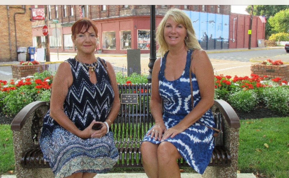BENCH DEDICATED — A bench was dedicated to the memory of Mark Miller Thursday evening in Toronto. Sharing a moment were Margaret Coleman, left, Miller’s mother, and Michele Chilenski, his sister. Miller, a longtime musician, volunteer and reporter for the Herald-Star, died on Christmas Day. -- Contributed