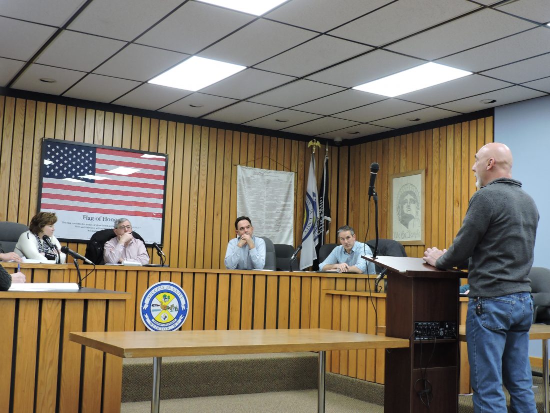 PLANS OUTLINED — Mike Chek, co-owner of Altair Development, speaks before the Weirton Planning Commission Wednesday, presenting the plan for the final parcel of developable property located within the Village at Colliers Way. -- Craig Howell