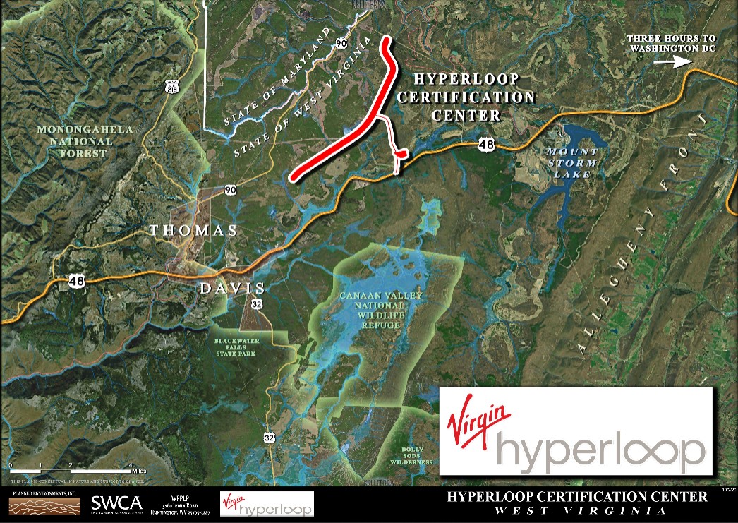 Virgin Hyperloop will construct the Hyperloop Certification Center on 800 acres of land between Tucker and Grant counties. The property owned Western Pocahontas Properties will be donated to the West Virginia University Foundation in partnership with Virgin.