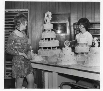 Patty admired cake possibilities at the Downtown Bakery, 151 S. Fourth St., meeting with Irene Trepanoski.