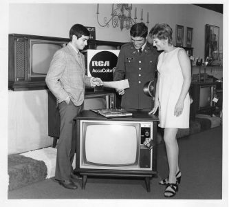 The couple met with Jerry Barilla (now Steubenville’s mayor) at Frank & Jerry Furniture and Appliances for information on buying an RCA color TV.