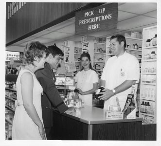 Treasure Island was one of the stops for bride and groom who talked with pharmacist Terry Reed in this 1970 photo. Treasure Island was located at Seventh and Washington streets, Steubenville.