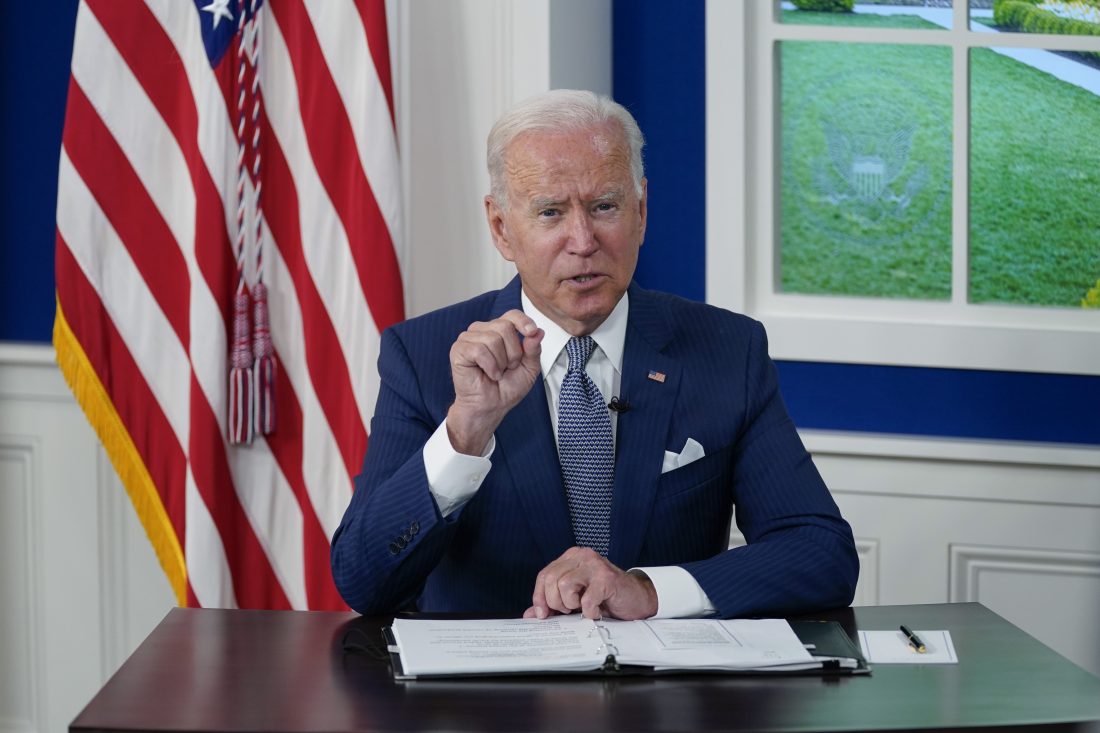 President Joe Biden speaks during a virtual COVID-19 summit during the 76th Session of the United Nations General Assembly, in the South Court Auditorium on the White House campus, Wednesday, Sept. 22, 2021, in Washington. (AP Photo/Evan Vucci)
