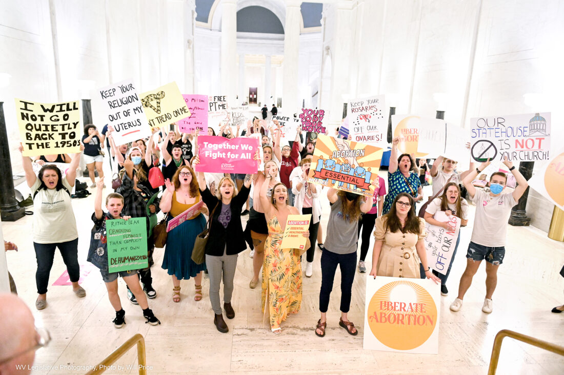PROTEST — A large group of protestors gathered outside the House of Delegates chamber Wednesday afternoon expressing their opposition to HB 302, clarifying West Virginia’s abortion laws. -- Photo Courtesy/WV Legislative Photography