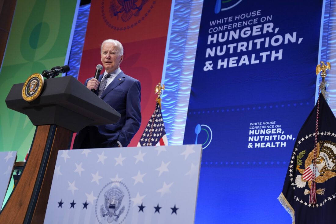 WASHINGTON (AP) — President Joe Biden said Wednesday his administration’s goal of ending hunger in the U.S. by the end of the decade was ambitious but doable, if only the nation would work together toward achieving it.