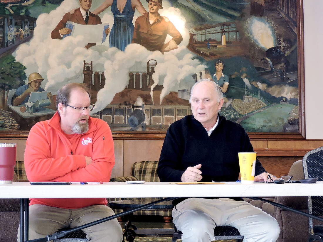 KEEPING IT CLEAN — The Weirton Board of Parks and Recreation met in a special session Thursday morning to discuss recent comments about concerns with cleanliness of the pool at the Millsop Community Center. Parks Executive Director Coty Shingle, at left, noted he has been meeting with his maintenance staff to discuss the concerns and they are being addressed. Also pictured, at right, is Park Board Chair Ed Bowman. -- Craig Howell