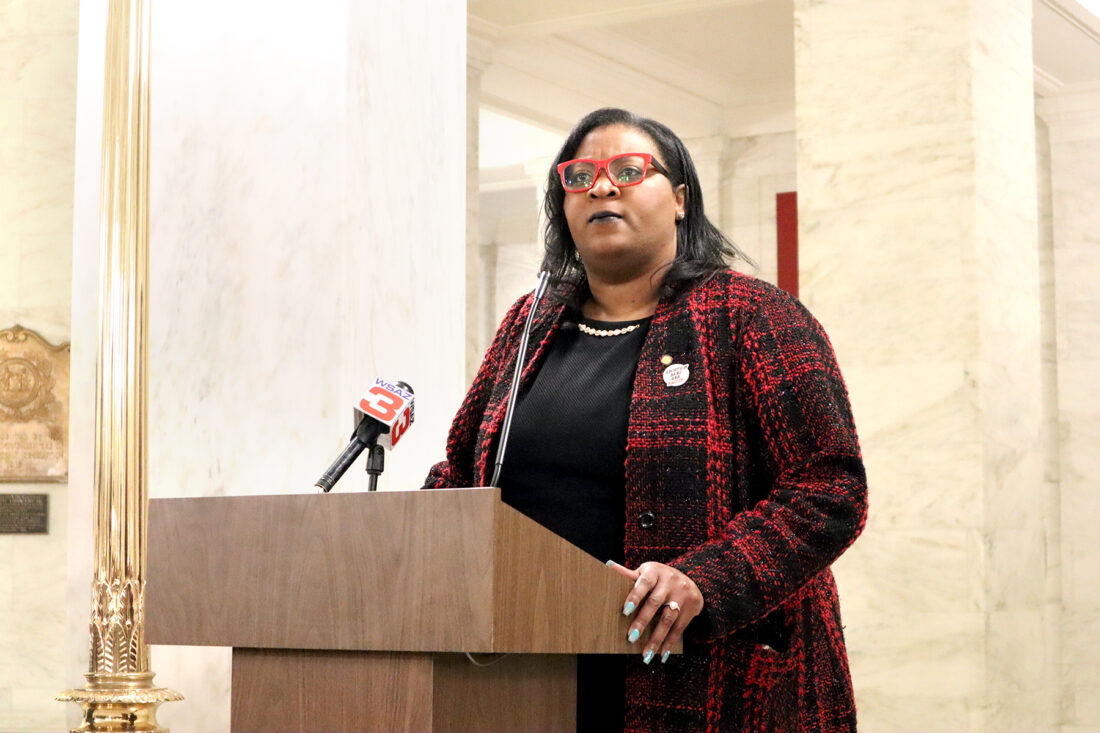 FILE - Democratic Del. Danielle Walker, a former abortion patient, speaks at a news conference at the West Virginia state Capitol in Charleston, W.Va., Jan. 31, 2022. Walker is leaving politics to lead the American Civil Liberties Union of West Virginia. The West Virginia lawmaker will step down from her roles as a delegate and vice chair of the state Democratic party to join the ACLU of West Virginia as its executive director. Her first day will be April 17, 2023. (AP Photo/Leah Willingham, File)