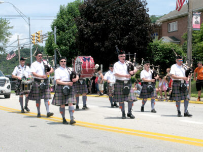 - FESTIVE SPIRIT — The Macdonald Pipe Band of Pittsburgh was one of many units in the Follansbee Community Days Parade, which kicked off the second day of a three-day festival that included a variety of food, music and fun. — Warren Scott