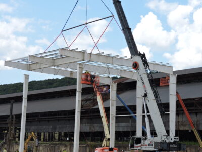 WEIRTON – The first of many milestones was reached Friday afternoon in the construction of a new battery manufacturing facility in Weirton.