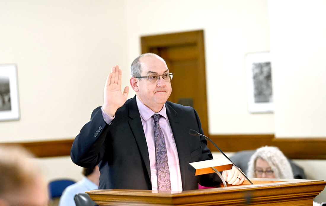 LOOKING FOR SUPPORT — Brad Douglas, executive officer for DCR, testifies before the Senate Judiciary Committee Monday regarding several bills to help deal with recidivism and keeping non-violent inmates out of the regional jails and prisons. - Photo Courtesy/WV Legislative Photograph