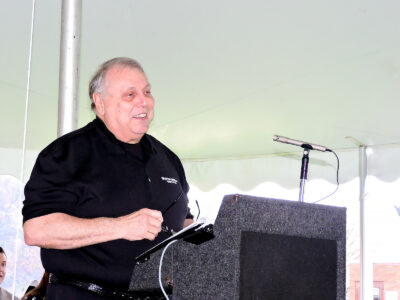 - OFFERING THANKS — Weirton Utilities Director A.D. “Butch” Mastrantoni was among those speaking Thursday during the groundbreaking ceremony. — Craig Howell