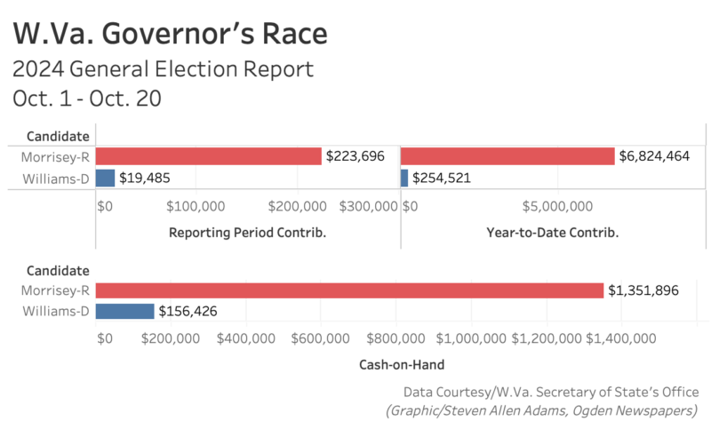 The West Virginia Secretary of State’s Office requires statewide candidates, legislative candidates and judicial candidates to file a general election report showing donations made between Oct. 1 and Oct. 20. The deadline for the report was Oct. 25.