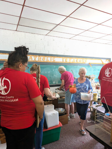 COMMUNITY HELPING COMMUNITY — Those affiliated with the Jefferson County Phoenix Program volunteered at the WEBA Food Pantry in Smithfield during the United Way of Jefferson County’s annual Day of Action in August. Food pantries throughout the county are helping more and more families every month, and those at the United Way are looking to take part in a program that will allow residents to form an assembly line and prepare freeze-dried meals for distribution at local food pantries.