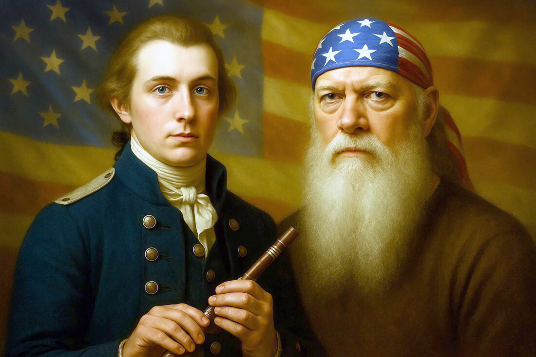 “I stand beside him here as his descendant. A proud member of the Sons of the American Revolution. Honoring the bloodline and spirit that still runs strong. His fife, my flag. Our shared freedom. Us.”