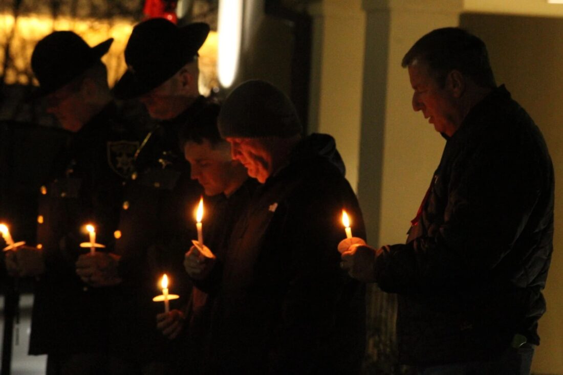 MARTINSBURG — Hundreds of first responders, service members and residents gathered outside the Berkeley County Sheriff’s Office on Wednesday evening for a candlelight vigil honoring Staff Sgt. Andrew Wolfe, the West Virginia National Guardsman critically wounded in a shooting near the White House last week.