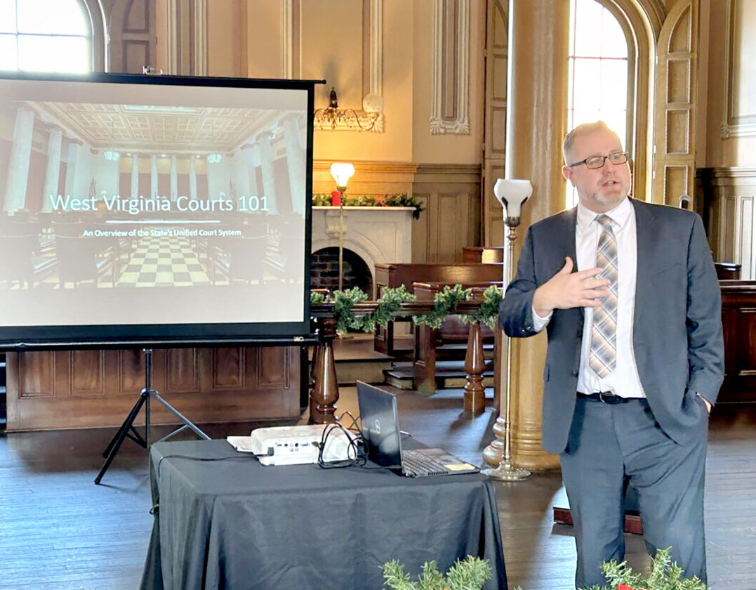 Ewing was among those addressing local high school students during the court’s Judicial Scholars Program Friday convened at West Virginia Independence Hall.