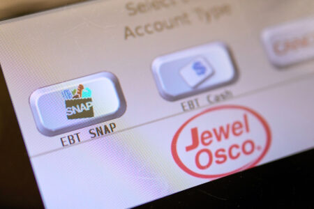 FILE - An EBT SNAP sign is shown on a self check out screen at a grocery store in Mount Prospect, Ill., Saturday, Nov. 1, 2025. (AP Photo/Nam Y. Huh, File)