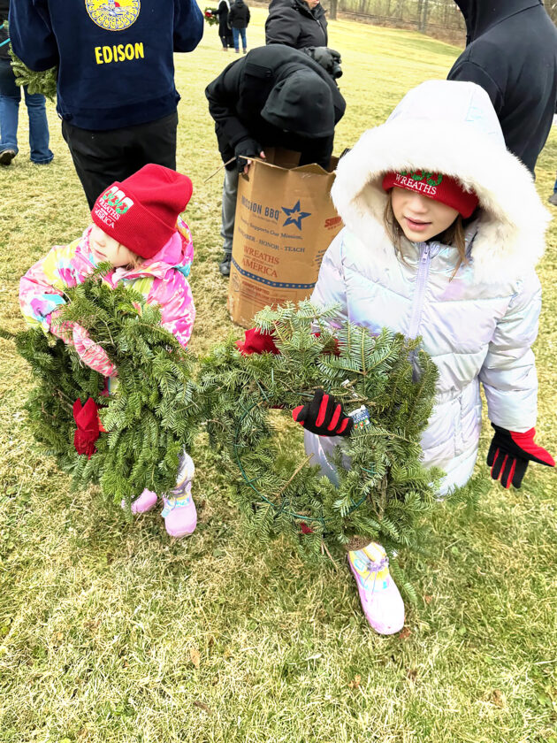 TAKING TIME TO HONOR –– Even children were among the participants who laid wreaths on the graves on local veterans during the annual Wreaths Across America event on Dec. 13. The daughters of Matt and Amanda Sliva took part in the ceremonies, held at St. Casimir, Rehoboth, Holmes and Adena cemeteries. -- Contributed