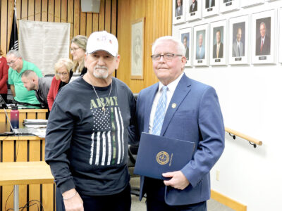 The City of Weirton continued its tradition, Monday, of paying tribute to area residents who have served the nation through the military. Mayor Dean Harris, right, presented a proclamation to Paul James Tokash in recognition of his time enlisted in the Army. Tokash served from January 1966 to January 1969, receiving basic training at Fort Bragg, with additional training in the areas of Airborne, code of conduct and military justice. He served as a communications center specialist in the 7th SFG Airborne 1st Special Forces in Vietnam, earning numerous decorations including the National Defense Medal, Vietnam Campaign Medal, Vietnam Service Medal, Parachute Badge, and Combat Infantryman Badge. — Craig Howell