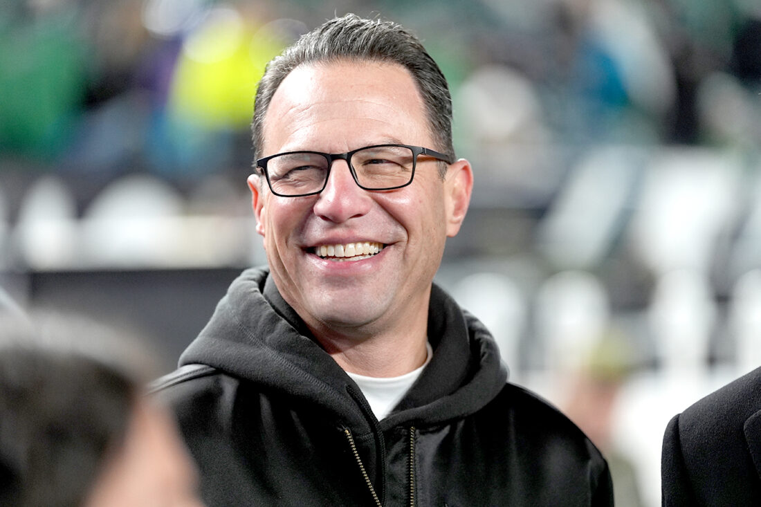 FILE - Pennsylvania Gov. Josh Shapiro watches warm ups before an NFL football game between the Philadelphia Eagles and the Detroit Lions on Sunday, Nov. 16, 2025, in Philadelphia. (AP Photo/Matt Slocum, File)