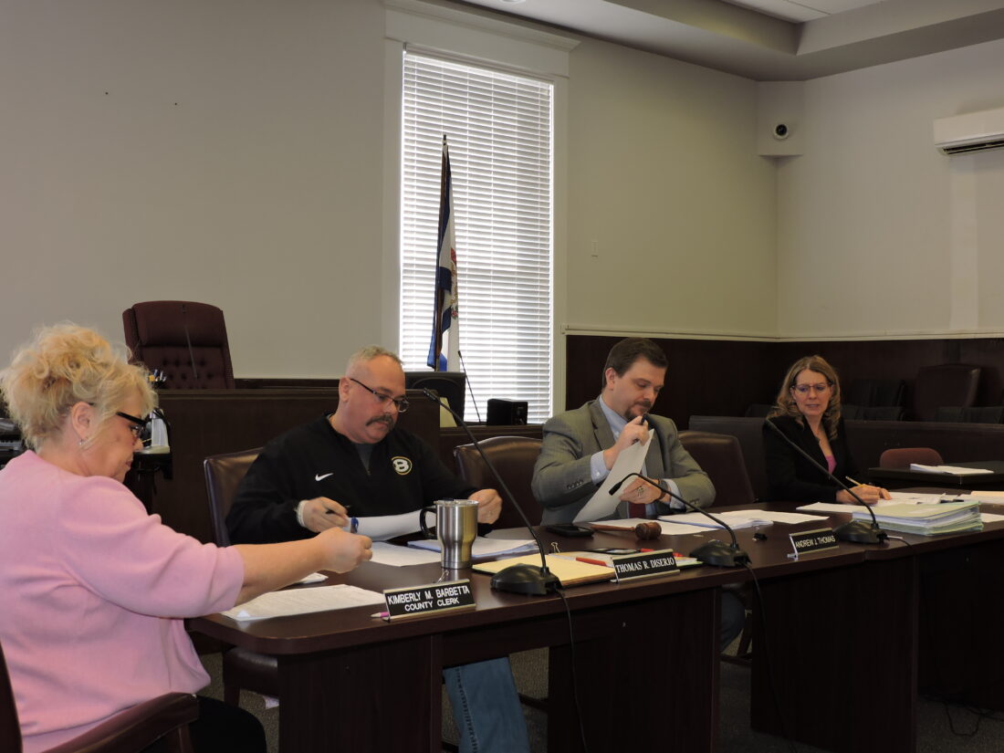 HIS LAST MEETING — A.J. Thomas Friday presided over his last meeting as Brooke County Commissioner and he and fellow county commissioners approved the transfer of the former Brooke County Probation Building to the city of Wellsburg. -- Warren Scott
