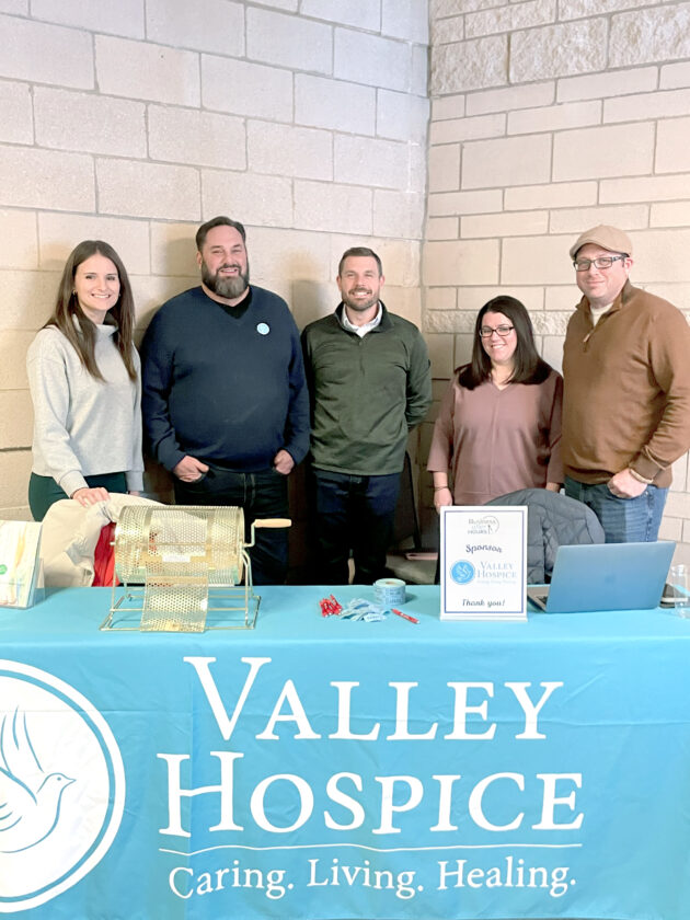 The Jefferson County Chamber of Commerce gathered held its monthly Business After Hours event Wednesday evening in the Finnegan Fieldhouse at the Franciscan University. Members and their guests shared hors d’oeuvres and beverages while enjoying networking opportunities and cheering on the Barons basketball team as they faced off against Waynesburg University. The evening was sponsored by Valley Hospice. Among those on hand were, from left, Emily Byers, chamber president; Chris Orris, community liasion for Valley Hospice; Chris Krivoniak, the university’s executive director of alumni and constituent relations; Leanna Lulla, chamber membership coordinator; and Buster Bowman, chamber events and marketing coordinator. For information about the chamber, call (740) 282-6226 or send an e-mail to info@jeffersoncountychamber.com. — Julie Stenger