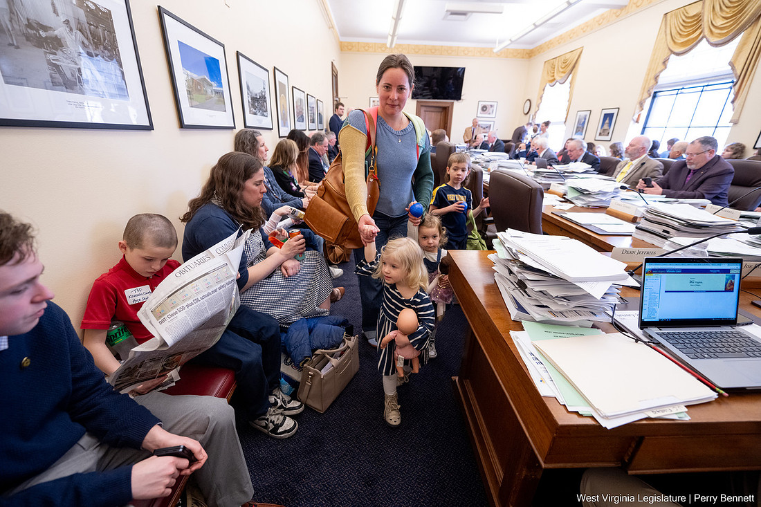 Families who receive Hope Scholarship funding make their way into the House Finance Committee meeting Friday. An originating bill to make changes to the Hope Scholarship program was removed from the agenda while a committee substitute to the originating bill is being worked on. -- Photo courtesy/WV Legislative Photography